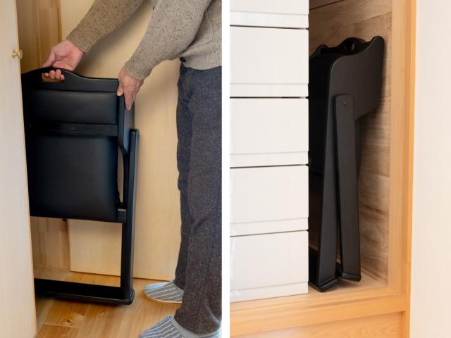 折りたたむと奥行約18.5cmのコンパクトサイズになります。使わない時は家具のすき間などに収納し、人が集まった時にはサッと取り出せて便利です。