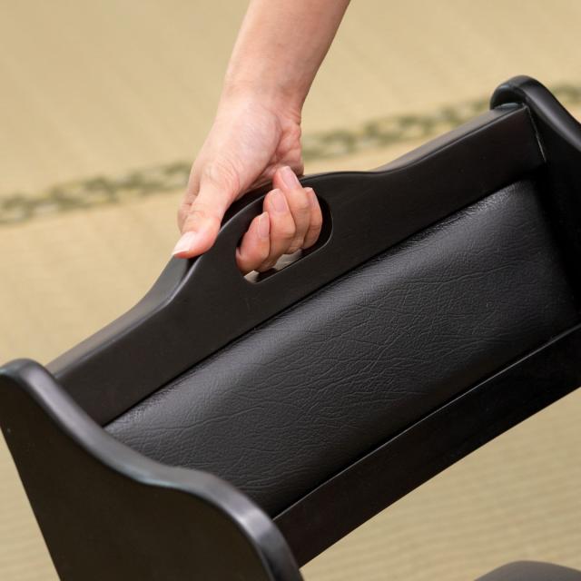 背面にある大きな持ち手は握りやすく、移動や持ち運びに便利です。