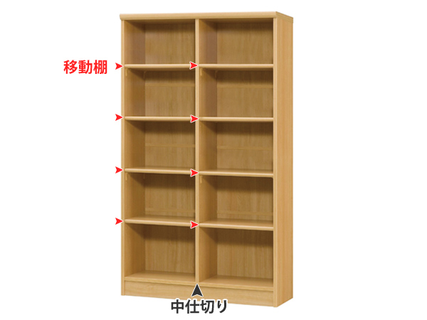 中心部にある中仕切り以外は自由にセッティングできます。収納物に合わせて棚板を設置できるので、効率的な収納が可能です。棚板は3cmピッチで調整いただけます。