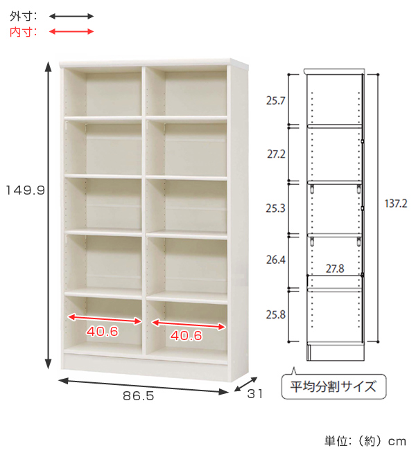 | サイズ | 約 幅86.5×奥行31×高さ149.9(cm) |