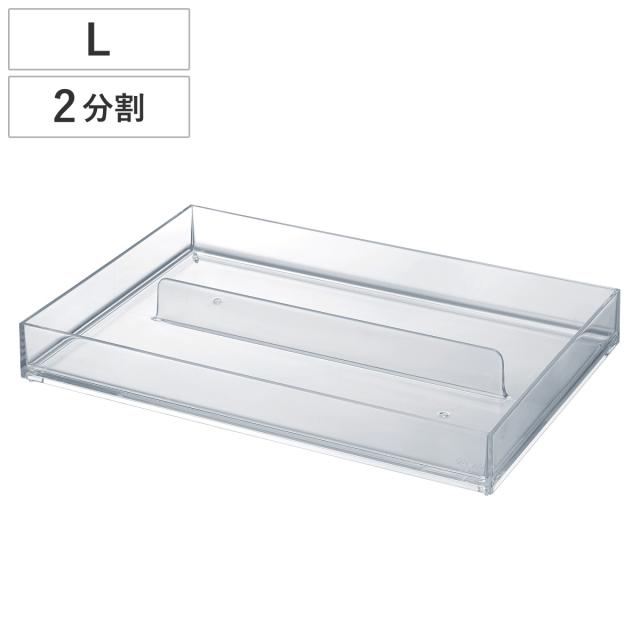 小物ケース クリア L 2分割 卓上収納 小物入れ 文房具 収納 ( カトラリーケース 収納ケース アクセサリーケース コスメ トレー トレイ 透明 積み重ね カトラリー ステーショナリー アクセサリー ケース 小物収納 仕切り 日本製 )