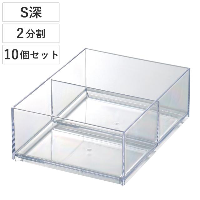小物ケース クリア S 深型 2分割 卓上収納 小物入れ 10個セット ( 収納ボックス 収納 アクセサリーケース コスメ サニタリー 小物収納 積み重ね 仕切り へアクセサリー ケース 文房具 プラスチック 仕切り付き 日本製 透明 )