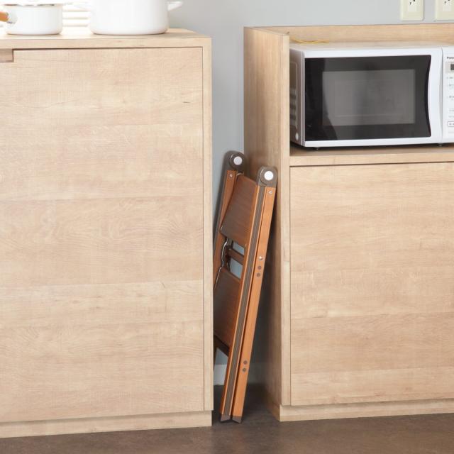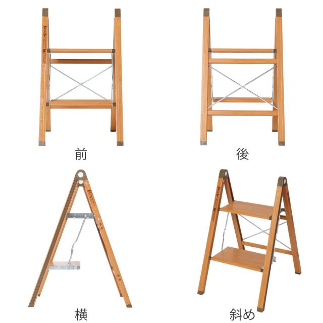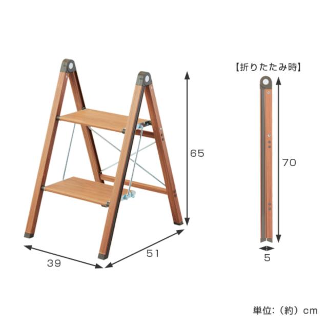 あとちょっとの高さに手が届く、便利な2段脚立です。オシャレな木目調デザインで、お部屋の雰囲気を損ないません。生活空間に溶け込むインテリア性に優れた脚立です。