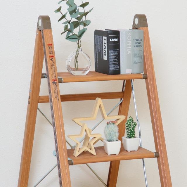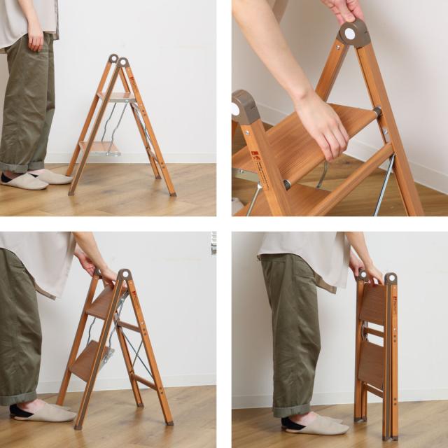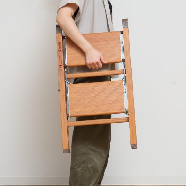 インテリアに馴染む木目調の軽くて丈夫なアルミ製脚立