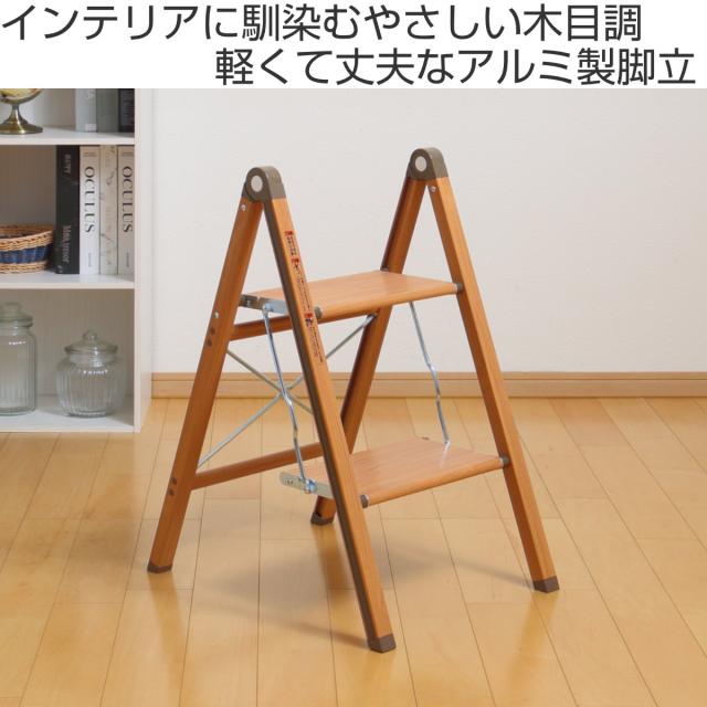 脚立 アルミ製 ウッディーステップ スリム 2段 軽量 木目調 ( アルミ ステップ台 踏み台 おしゃれ 折りたたみ コンパクト 収納 はしご 耐荷重100kg ステップ 踏台 二段 作業台 屋内 滑り止め 安定感 頑丈 丈夫 インテリア )
