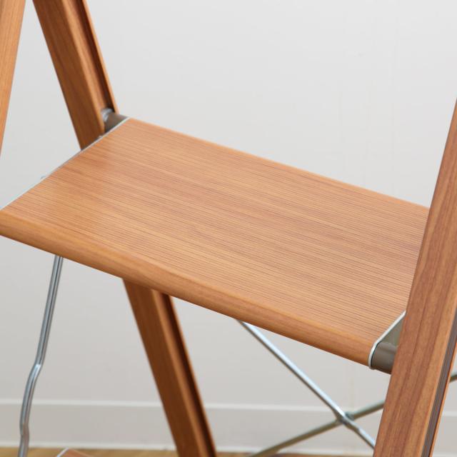 木製のような見た目で、実は軽くて丈夫なアルミ製です。日常の様々なシーンで使用する脚立を、必要な時にサッと運んで気軽にお使いいただけます。