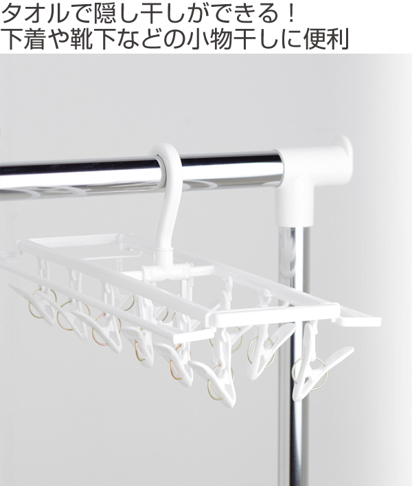 《洗濯グッズ 洗濯用品 洗濯物干し 室内干し 物干し 折り畳み 折りたたみ コンパクト 12P 12ピンチ タオル 隠し干し 渡し干し 白 白色 ホワイト》