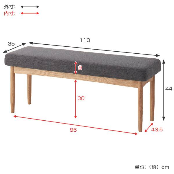 ダイニングベンチ 幅110cm 北欧風 ecomo ( チェアー 長椅子 椅子 ダイニング ベンチ イス 食卓椅子 木製 天然木 背もたれなし スツール ダイニングチェア 食卓ベンチ レザー調 ファブリック いす 食卓 リビング 木製椅子 )