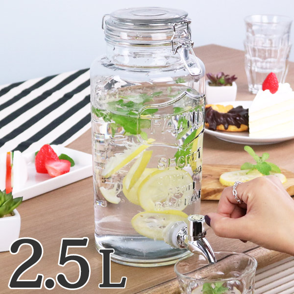 ドリンクサーバー 2.5L ガラス 蛇口付き ( 梅酒 果実酒 ウォーターサーバー ガラス瓶 ガラス製 瓶 ドリンクディスペンサー サングリア ジュース作り )