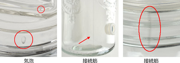 ※写真の赤い丸で囲んだ部分など。傷や気泡・混入物・汚れ等の度合いは、商品によって異なります。