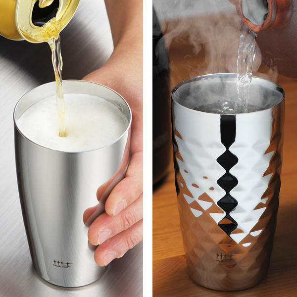 ●冷たいものを注いでも水滴がつきにくく、熱も伝わりにくい2重構造です。