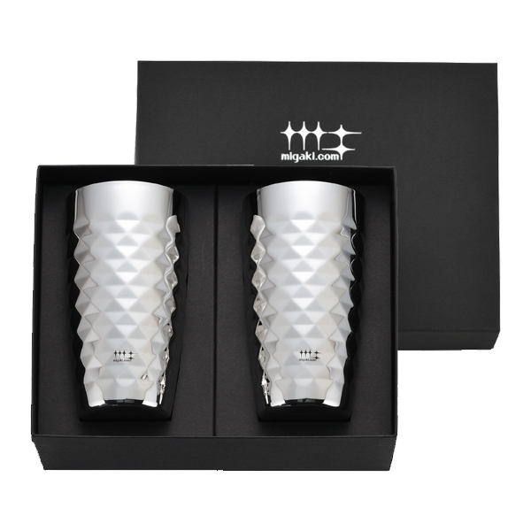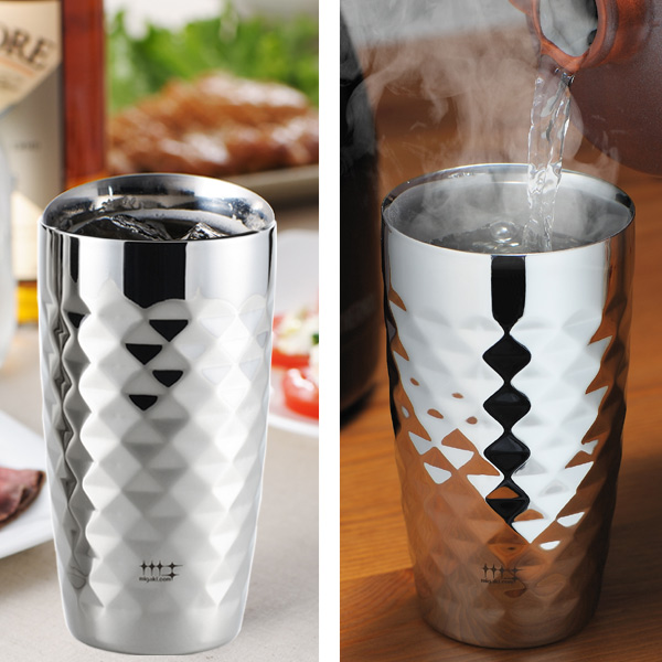 ●2重構造プラス高級感のあるダイヤモンドカット仕上げのビアタンブラーのセットです。