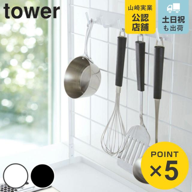 tower 山崎実業 自立式メッシュパネル用 フック5連 タワー 対応パーツ ( タワーシリーズ キッチンツールフック 5連 フック 小物フック 小物掛け 吊り下げ収納 吊り下げ キッチンツール収納 tower 山崎実業 キッチン 山崎実業 tower キッチン)