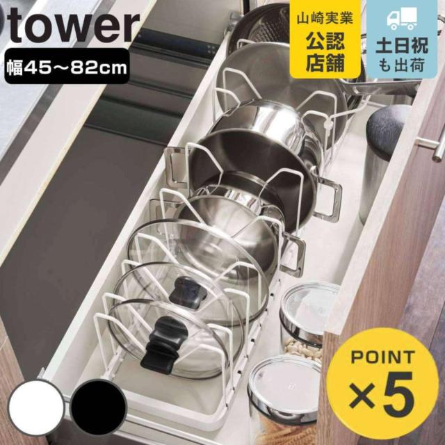 tower 山崎実業 シンク下 伸縮鍋蓋&フライパンスタンド タワー ( 4903208038409 タワーシリーズ フライパンラック シンク下収納 鍋蓋立て シンク下収納ラック システムキッチン tower 山崎実業 キッチン 山崎実業 tower キッチン)