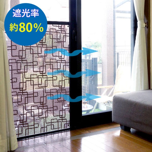 モダンな柄がおしゃれで手軽にデコレーションを楽しめます。粘着メッシュで貼り付けも簡単です。気持ちいい風はそのままで遮光効果も期待できます。