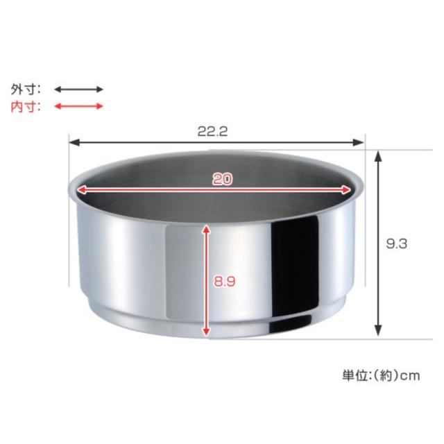 | 材質 | 本体:ステンレス鋼 本体内面:ラセン研磨仕上げ 本体外面:ミラー研磨仕上げ ハンドル:ステンレス鋼 |