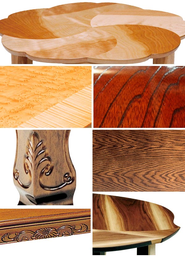 脚部は無垢材を使用しますが天板(テーブル面)には軽量化を図りつつ木質板に突板(天然木を薄く剥いだもの)や木目シートを貼り、重厚感と高級感を感じられる作りとなっています。