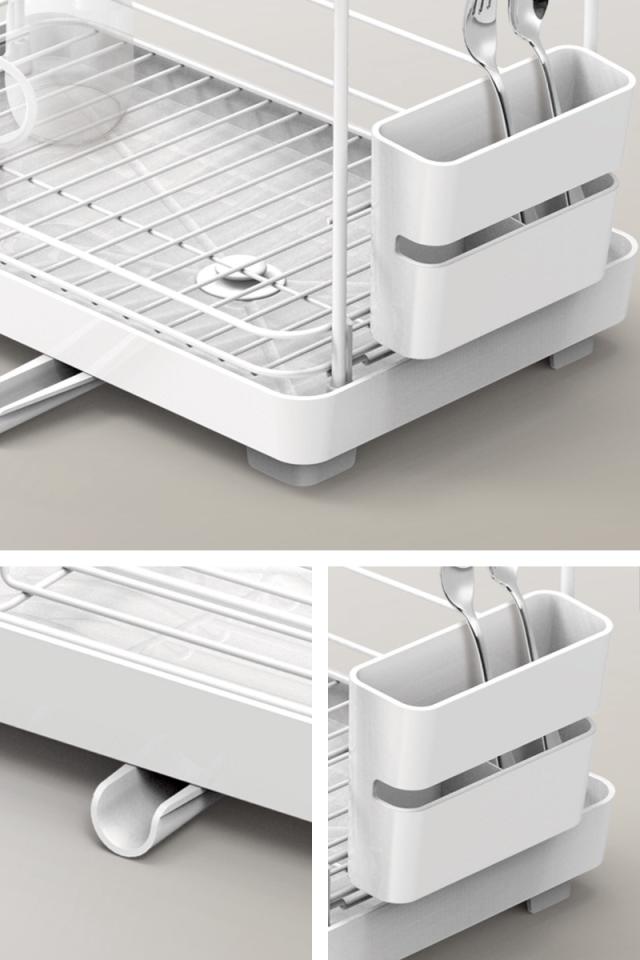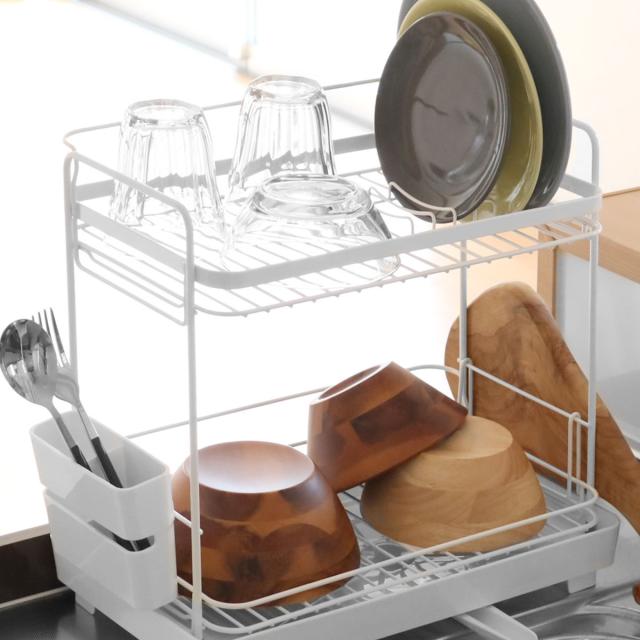 無駄のないシンプルなデザインが、キッチンをすっきりとした印象にしてくれる水切りラックです。ホワイトカラーがおしゃれで清潔感のあるキッチンを演出してくれ、どんなインテリアにも馴染んでくれます。