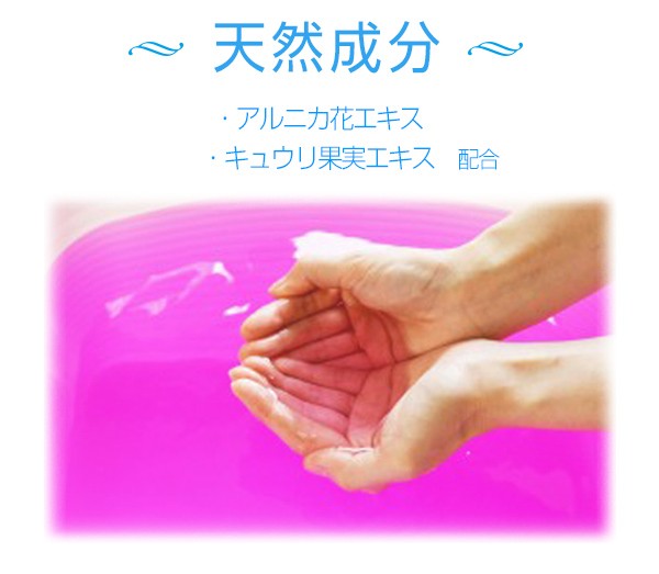 | 成分 | ■天然成分:アルニカ花エキス、キュウリ果実エキス、セイヨウキズタ葉/茎エキス、ゼニアオイ花エキス、パリエタリアエキス、セイヨウニワトコ花エキス ■その他成分:塩化Na・香料・シリカ・チオ硫酸Na・BG・水・赤106 |