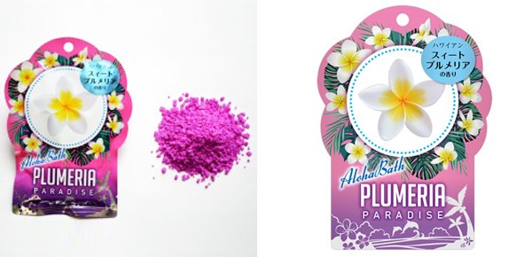 ご自宅のお風呂で気軽にハワイアンリゾート気分を味わえる入浴剤、「アロハバス」シリーズ、スウィートプルメリアの香りです。