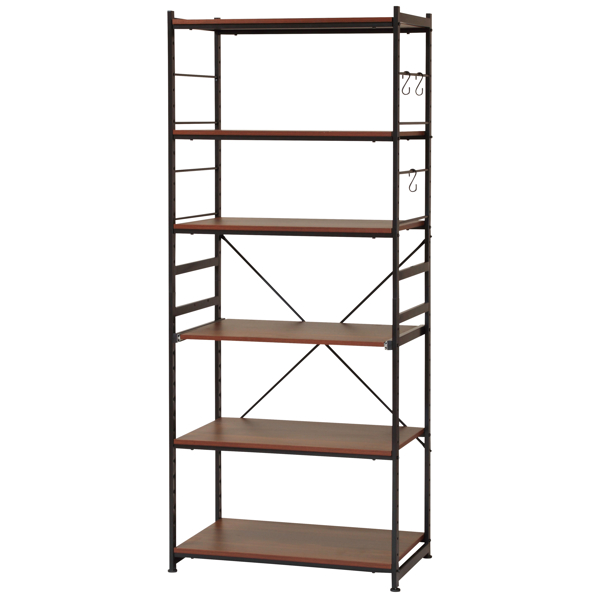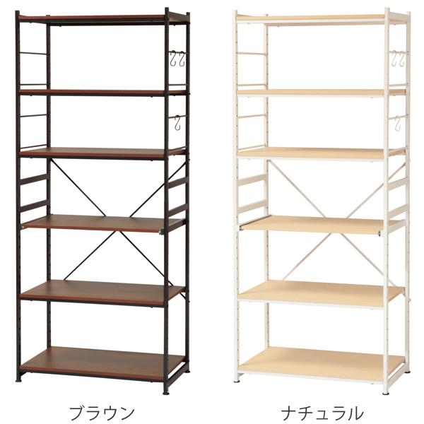 キッチンラック 幅75cm スライド棚 スチール S字フック3個付き SARA ( 食器棚 収納 家電ラック キッチンボード 収納ラック おしゃれ オープン収納 棚 ラック フック付き ブラウン ナチュラル )