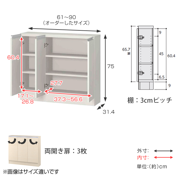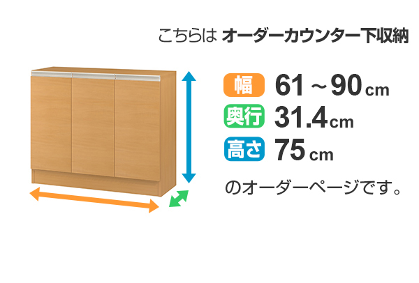 カウンター下収納 幅オーダー 扉付 レギュラータイプ 高さ75cm 幅61〜90cm ( 収納 キッチン収納 キャビネット 窓下収納 リビングボード 収納棚 食器棚 収納家具 可動棚 開き戸 セミオーダー 日本製 )