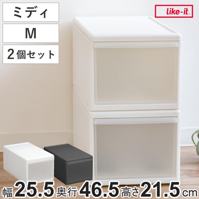 収納ケース ミディ M 幅26×奥行47×高さ22cm 引き出し 収納 同色2個セット ( 収納ボックス 衣装 ケース 日本製 クローゼット収納 隙間収納 プラスチック 押入れ収納 キッチン 脱衣所 衣類 スタッキング 積み重ね リビング収納 )