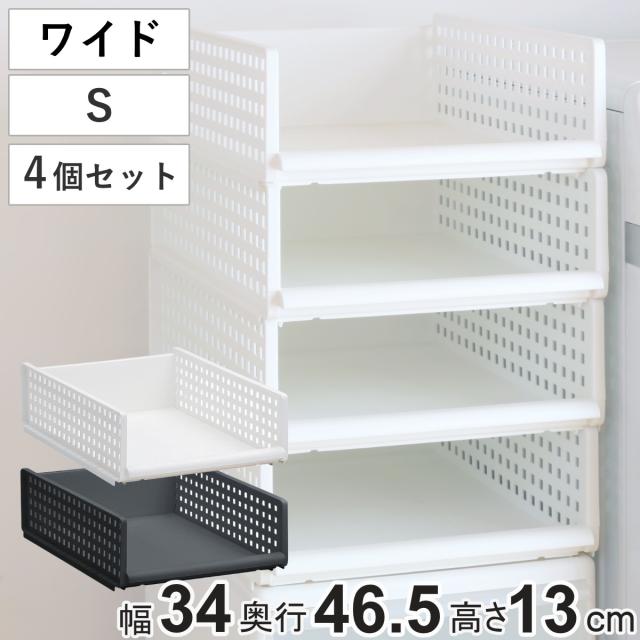 収納トレー ワイド S プラスチック 洗面台下 収納 日本製 同色4個セット ( トレー シンク下 幅34 奥行47 高さ13 収納ケース 卓上 キッチン クローゼット収納 洗面台 整理 積み重ね スタッキング トレイ タイプ 押入れ収納 )