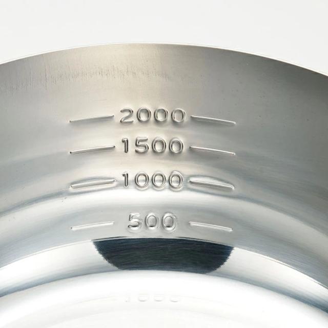 磨き職人がピカピカに仕上げた、目盛り付きゆきひら鍋