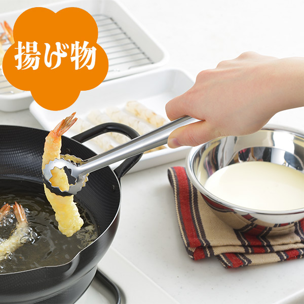 ●天ぷらなどをしっかりと挟んで取り出す揚げ物トングです。