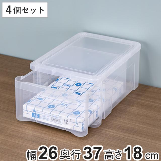 収納ボックス プレクシー ケース S A4 サイズ 日本製 4個セット ( 幅26×奥行37×高さ18cm 小物ケース 収納ケース レターケース 引き出し クリア 透明 小物 収納 小物入れ プラスチック 積み重ね 書類ケース レターボックス )