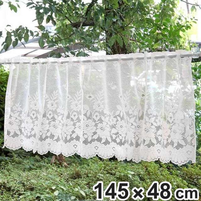 カフェカーテン バラ柄 145×48cm ( カーテン 目隠し レース 窓 ファブリック 洋室 リビング キッチン 子供部屋 小窓 おしゃれ 洗える カットできる )