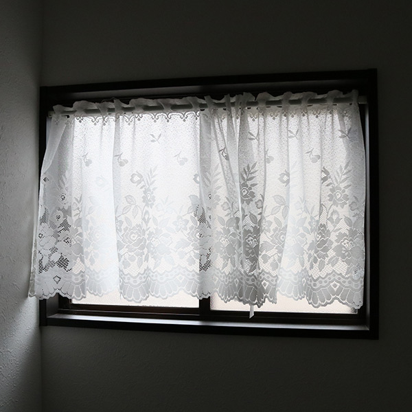 多少の透け感はありますが、光を遮らないので小窓に飾るのに最適です。シンプルで落ち着きのある合わせやすさが魅力です。