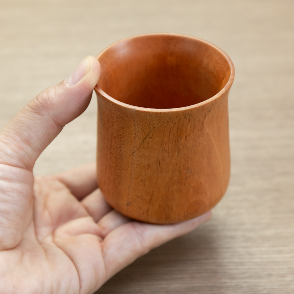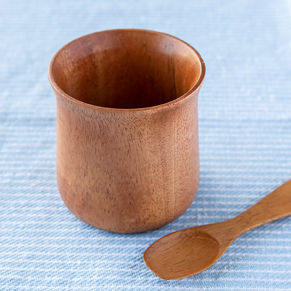 お子さまの小さな手に馴染む形状の木製のカップです。木製のナチュラルな質感を残しながら、食洗機でも洗える加工を施しました。軽くて落としても割れにくいので、初めてのコップにぴったりです。