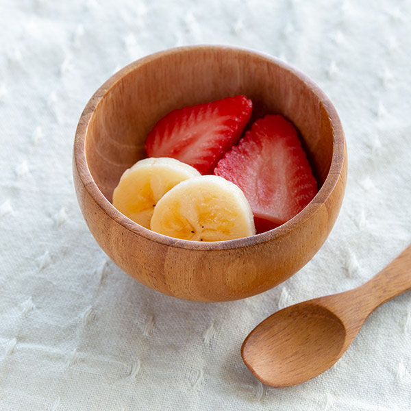 ころんとした形が可愛い木製の器です。木製のナチュラルな質感を残しながら、食洗機でも洗える加工を施しました。離乳食や、果物・アイスクリームを入れたり、幅広く長く使っていただけます。また、深さがあるので汁気のあるお料理も安心して入れられます。