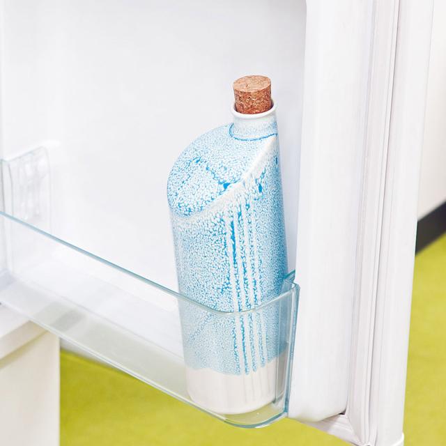 2リットルのペットボトルより少し小さめのサイズ感で、冷蔵庫のドアポケットにすっきり収納できます。