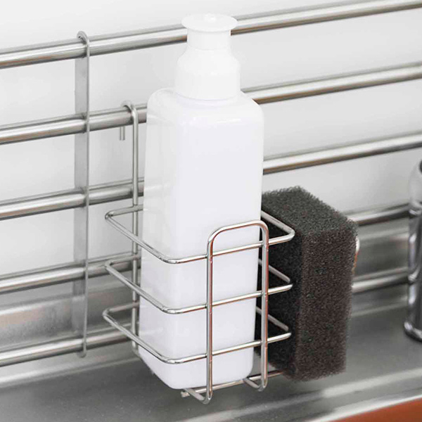 ●洗剤ボトルとスポンジをまとめて同時に収納できます。