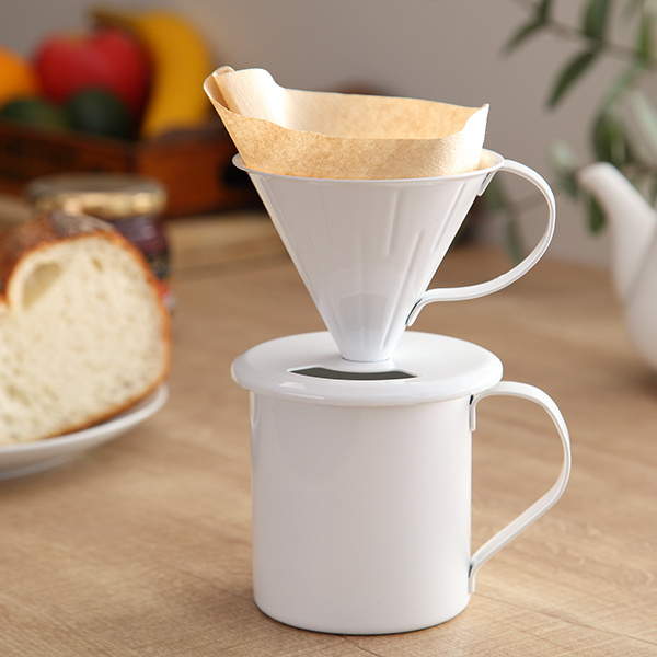 新潟県燕市の職人の手によって作られた、琺瑯の「ブランシリーズ」。そのなかの珈琲アイテムは日常使いはもちろん、ギフトにも最適です。清潔感があり、上品で温かみのあるホーローの白は食卓を明るくしてくれます。