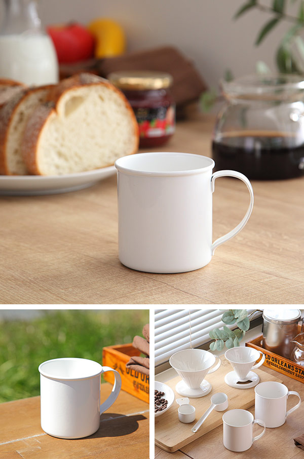 優しい口あたりのホーローはにおいがつきにくく、飲み物本来の味や香りをお楽しみいただけます。独自の技術でフチまできれいに琺瑯でコーティングされ、艶やかな質感でお手入れも簡単です。