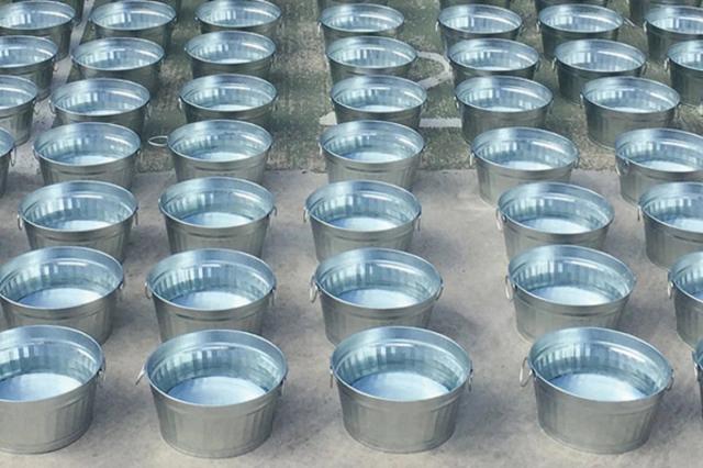 オバケツに使用されているトタン材は、錆びにくいコーティングが施されているので室外でも安心して使用できます。また、サビの原因となる溶接を行わずひとつひとつ丁寧に仕上げているので長持ちします。使い込むほどレトロな魅力が増し、あなただけの素敵なオバケツが出来上がります。