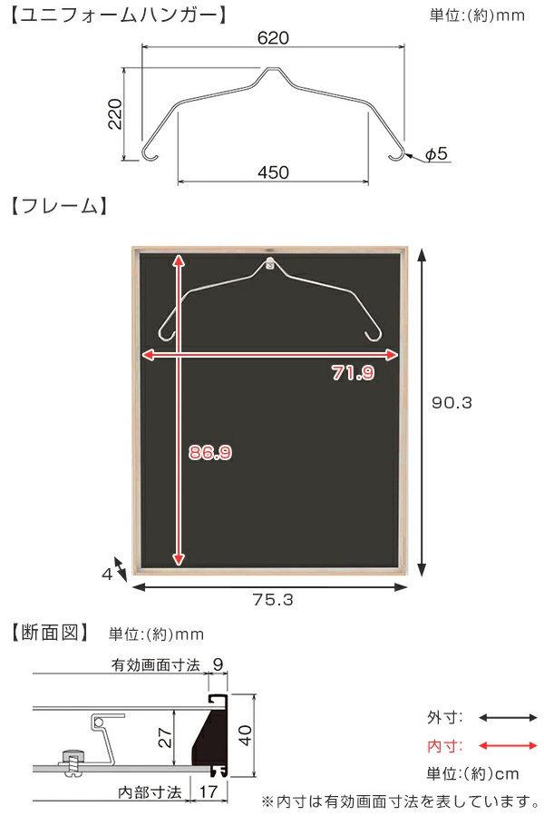 ユニフォーム 収納 ユニフォーム額 L200 Mサイズ フレーム ナチュラル ( 額 ディスプレイ 額縁 ユニフォームケース 壁掛け コレクション ディスプレイケース バックボード 選べる 飾る ハンガー Tシャツ 額装 インテリア )
