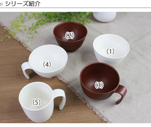 ![]() (4)汁椀 ハンドル付 持ちやすい | ![]() (5)コップ 持ちやすい |