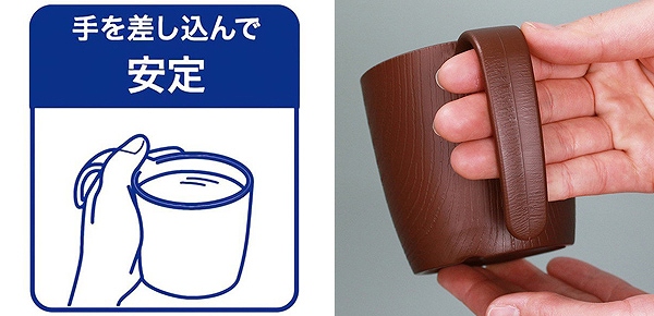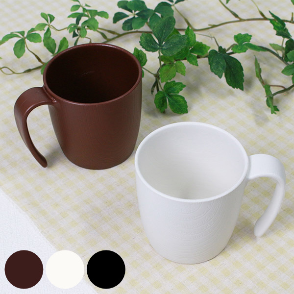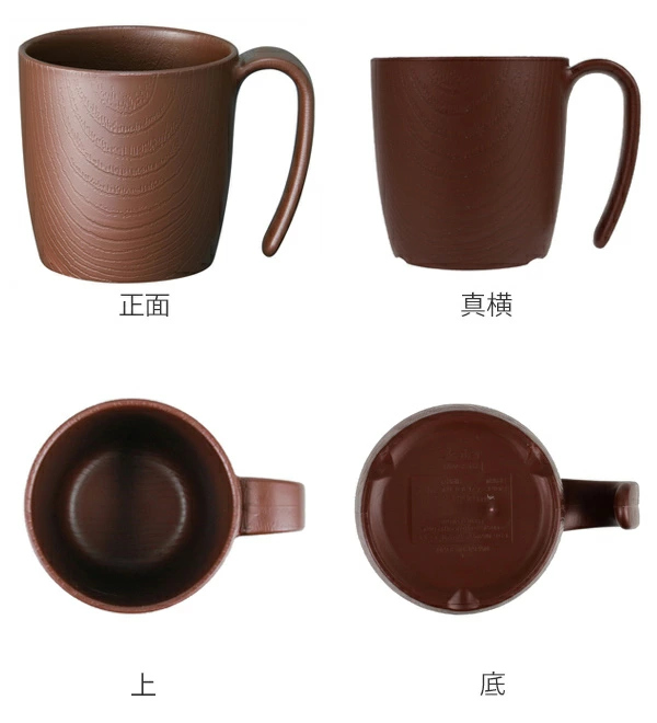 コップ 290ml 持ちやすい 木製風 介護 食器 プラスチック製 日本製 ( 食洗機対応 電子レンジ対応 マグカップ 持ち手 プラスチック 木目調 介護用 自助食器 ユニバーサルデザイン 介護用品 割れにくい )