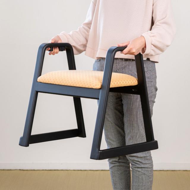 座面の両サイドにハンドルがあることで、立ち座りの動作がグッと楽になります。安心と快適さを兼ね備えた設計です。