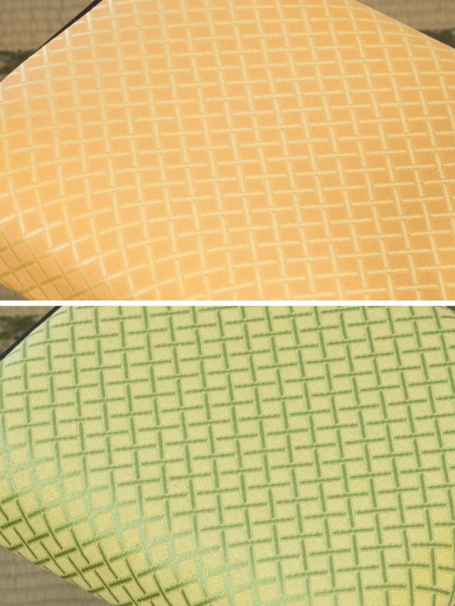 斜めに格子柄が構成された涼しげな座面の生地には、肌触りの良いポリエステル生地が使用されています。