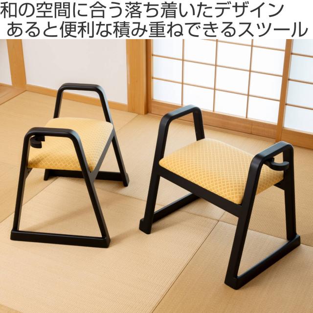 スツール ハンドル付 同色2脚セット 座面高38cm スタッキング お座敷チェア ( 立上り楽 取っ手 持ち運び 腰掛け 和室 座敷 玄関 畳用椅子 軽い 料亭 旅館 仏事 法事 仏具 冠婚葬祭 木製 完成品 )