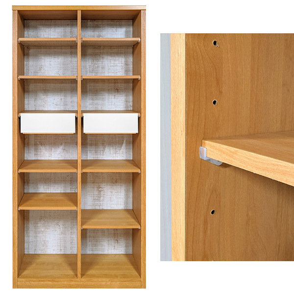 棚板と引出し付き棚板が動かせて思い通りの収納スペースが作れる