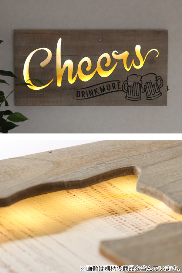照明 ウェルカムボード LED サインボード 木製 チアーズ ( メッセージボード アートボード インテリア 光る led 壁掛け 卓上 おしゃれ 天然木 電池式 お店 看板 バー bar )