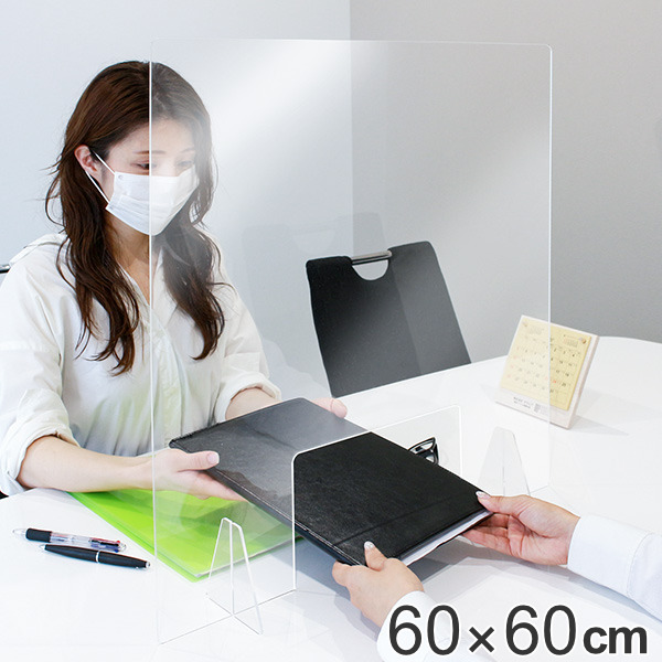 パーテーション アクリルパーテーション 透明 窓付きタイプ 幅60×高さ60cm ( 窓付タイプ 自立式 クリア アクリル パネル クリアパネル 窓付 日本製 )