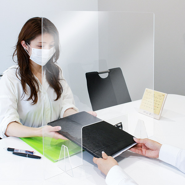 優れた透過性を持つアクリル製の間仕切り用パネルです。圧迫感や威圧感もなくお使いいただけます。